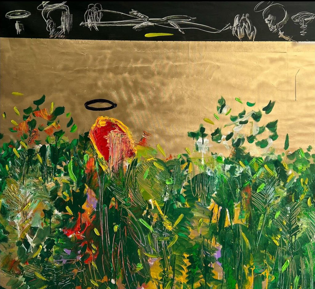 L’artista ci accompagna allora nei suoi giardini della memoria, ci accompagna fuori dal bosco inseguendo le sue forme invisibili, disegna pareti e arcate che prendono forma come tracciati fosforescenti incisi nel bitume della notte, ci fa immaginare Deposizioni dove le assemblee delle figure ripetono gesti e cerimonie di liturgie cancellate dal trascorrere dei secoli, conducendoci alla ricerca di un centro perduto, nei fondali cupi di una materia spessa e tormentata, dove si scopre il cuore pulsante celato sotto la coltre densa che ci nasconde la reale percezione del mondo.